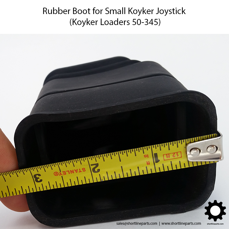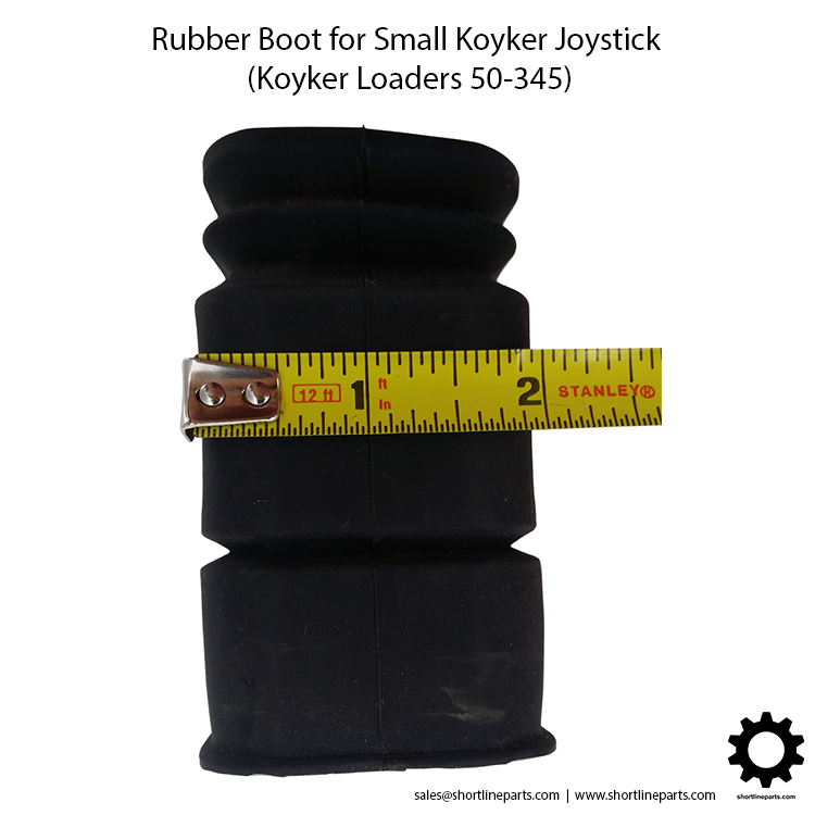 RUBBER BOOT IS IN STOCKThe rubber boot on the Koyker loaders 50 - 345 often needs to be replaced. This is the  replacement rubber boot for the small Koyker joystick.Dimensions:3” (length) X 2-¼” (width) X 4-¼” (height)